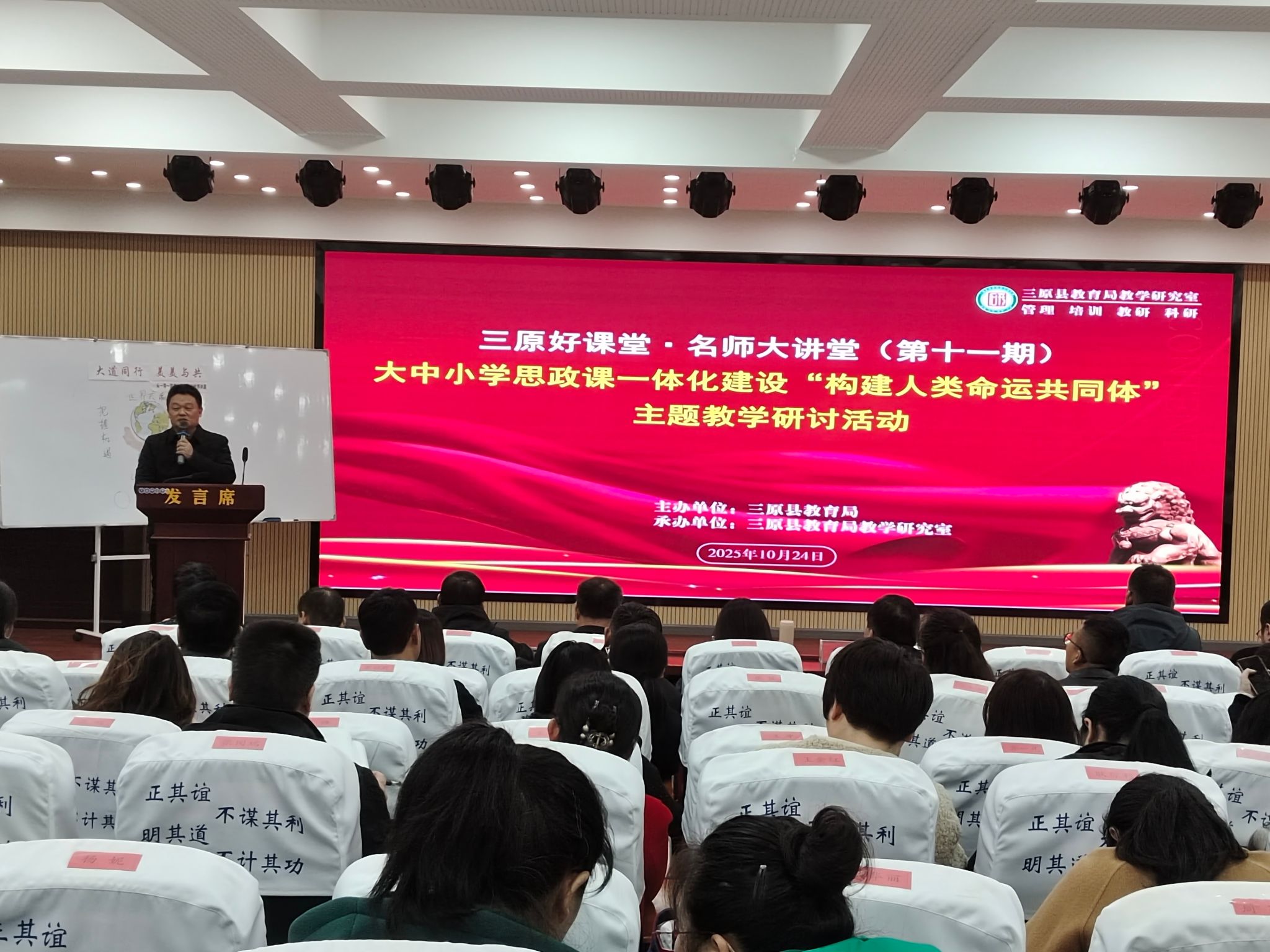 10月24日,三原县教育局举办大中小学思政课一体化建设“构建人类命运共同体”主题教学研讨活动。马克思主义学院院长曾永安、教师张蓓、黄晓月、王宇琴一行受邀参加。
